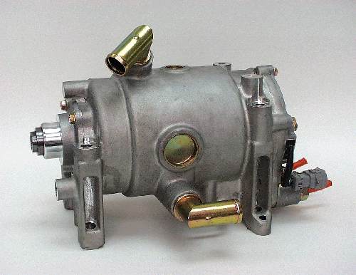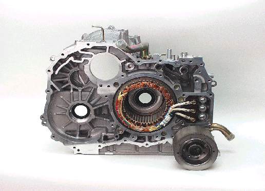 Hitachi Automotive Systems Americas, Inc. is in production on a "hybrid" vehicle. Shown above is the electric traction motor housing between the internal combustion engine and the gear. The traction motor can provide main or supplemental power to the vehicle.