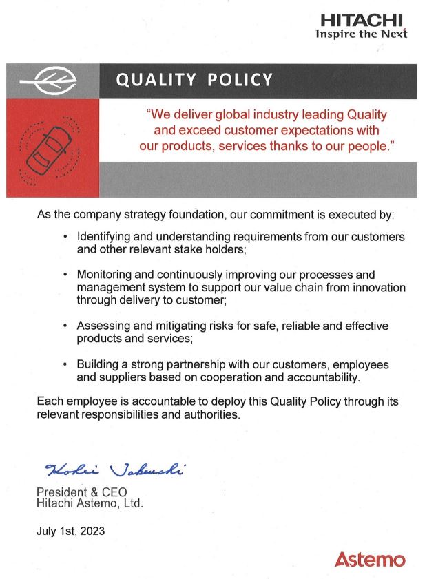 The continual improvement of our products, services, and processes, including improving the effectiveness of the Hitachi Astemo Americas Management System.